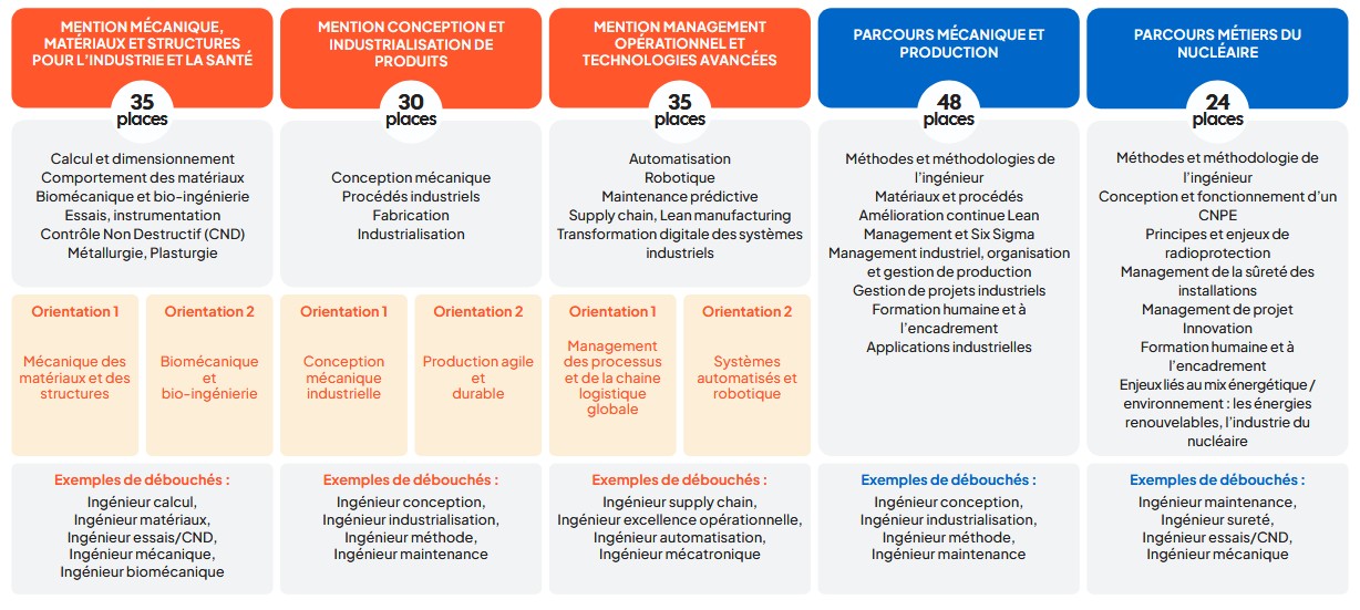 | LICENCE/École d'ingénieur en France | Mention 1 | Mention 2 | Mention 3 | Mécanique et Production | Métiers du nucléaire |